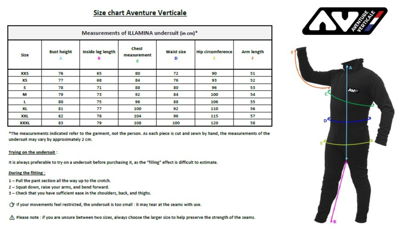 The Aventure Verticale (AV) Illamina is a undersuit and is stretchable in all directions, very breathable, anti-pilling exterior very resistant to abrasion.